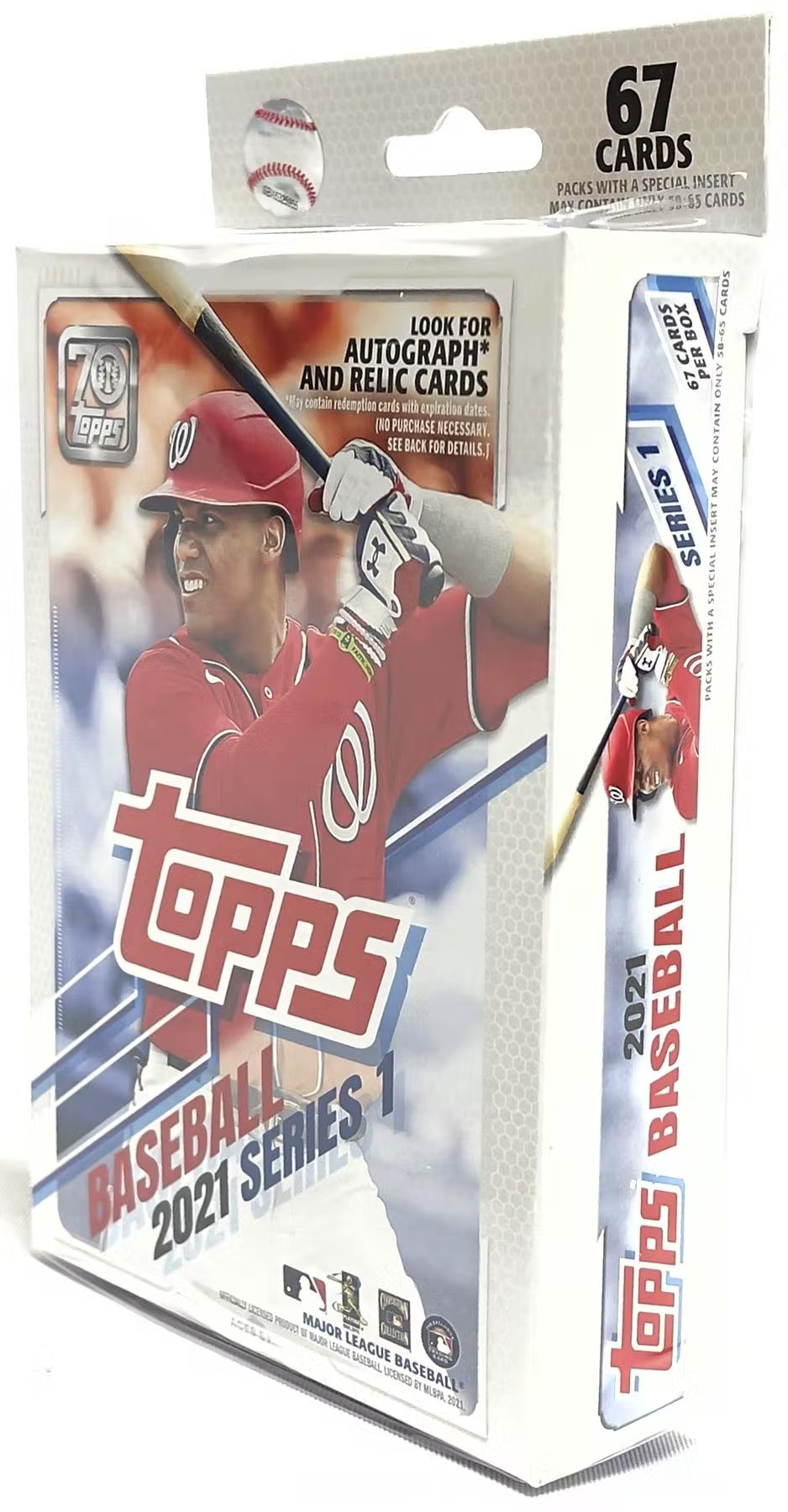 Every Series 1 Hanger Box contains Sixty-Seven 2021 Topps Baseball Series 1 Cards; including Two Topps Insert Cards!
