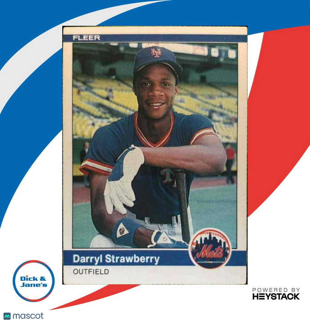 This 1984 Fleer Darryl Strawberry #599 RC card is a must-have for any New York Mets fan or baseball card collector. This MLB rookie card features the iconic outfielder in his early playing years, making it a valuable addition to any collection. Don't miss out on this piece of sports memorabilia history! Listed With Mascot.