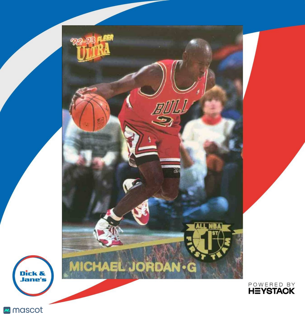 Collect a piece of basketball history with this 1992-93 Fleer Ultra Michael Jordan All NBA #4 Chicago Bulls card. Featuring the iconic Michael Jordan in his prime, this card is a must-have for any NBA fan or collector. Don't miss out on owning a piece of NBA greatness! Listed With Mascot.