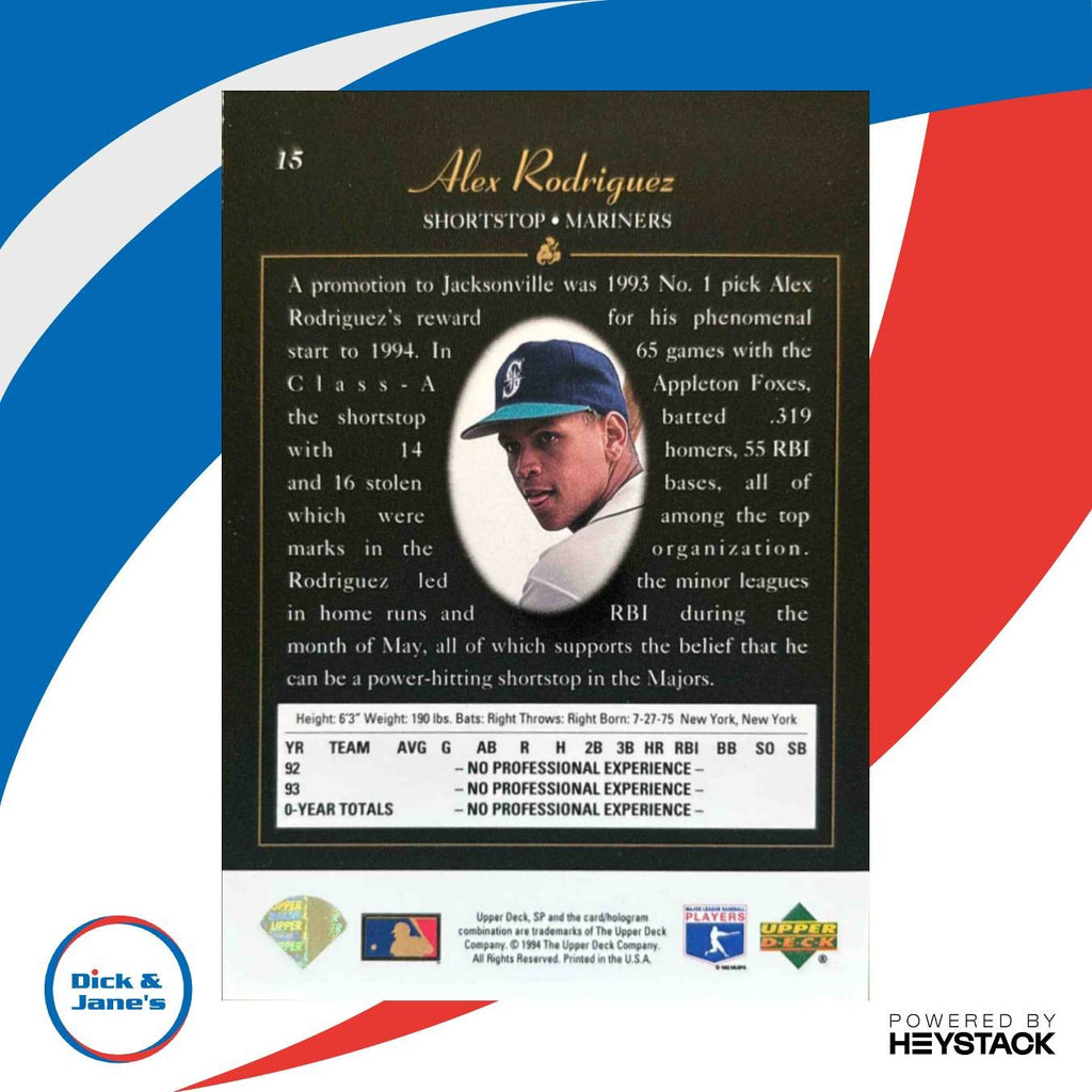 1994 SP Alex Rodriguez #15 RC Seattle Mariners Listed With Mascot.
