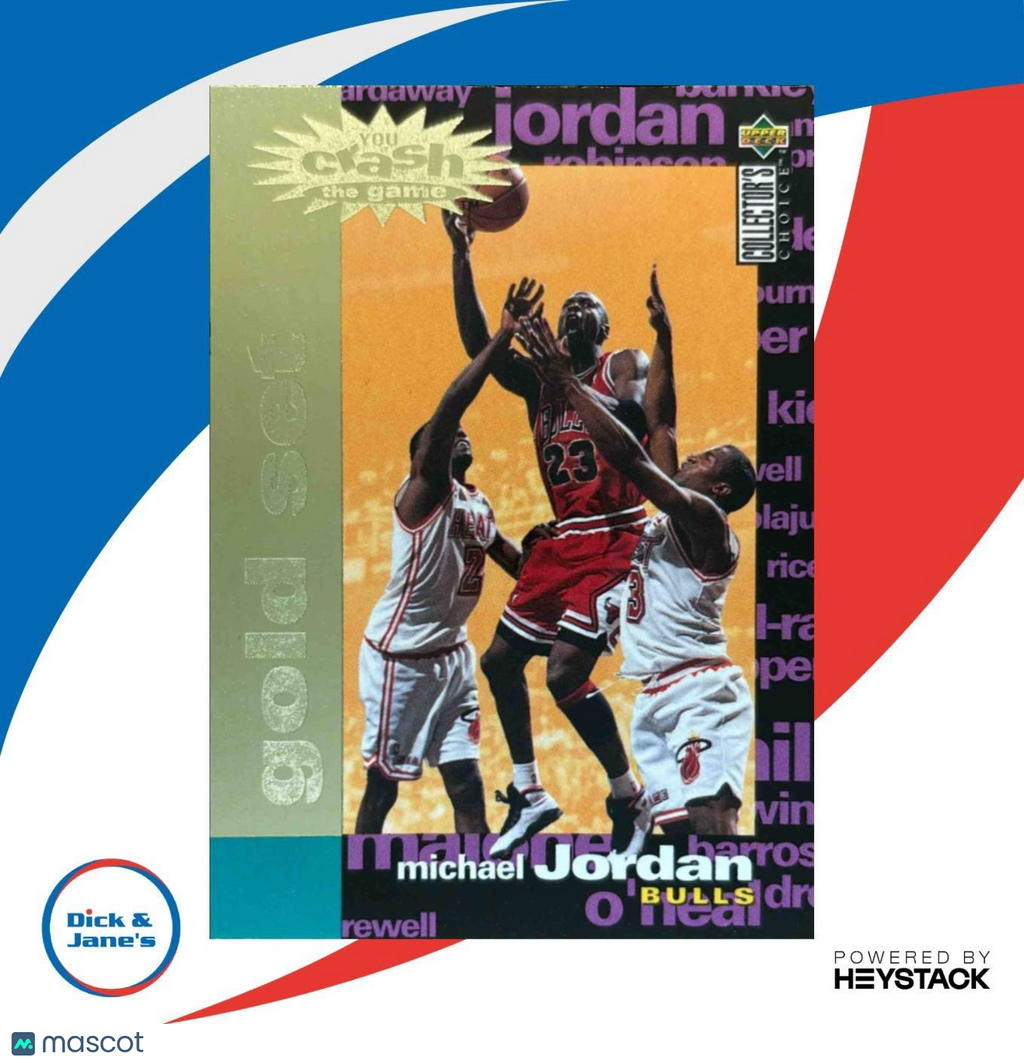 The 1995-96 Upper Deck Collector's Choice Michael Jordan Crash the Game Gold Bulls trading card features the iconic NBA player in action, making it a must-have for any basketball card collector. This rare gold edition card captures Jordan's dominance on the court and is a standout piece for fans and collectors alike. Don't miss your chance to own a piece of basketball history with this highly sought-after card. Listed With Mascot.