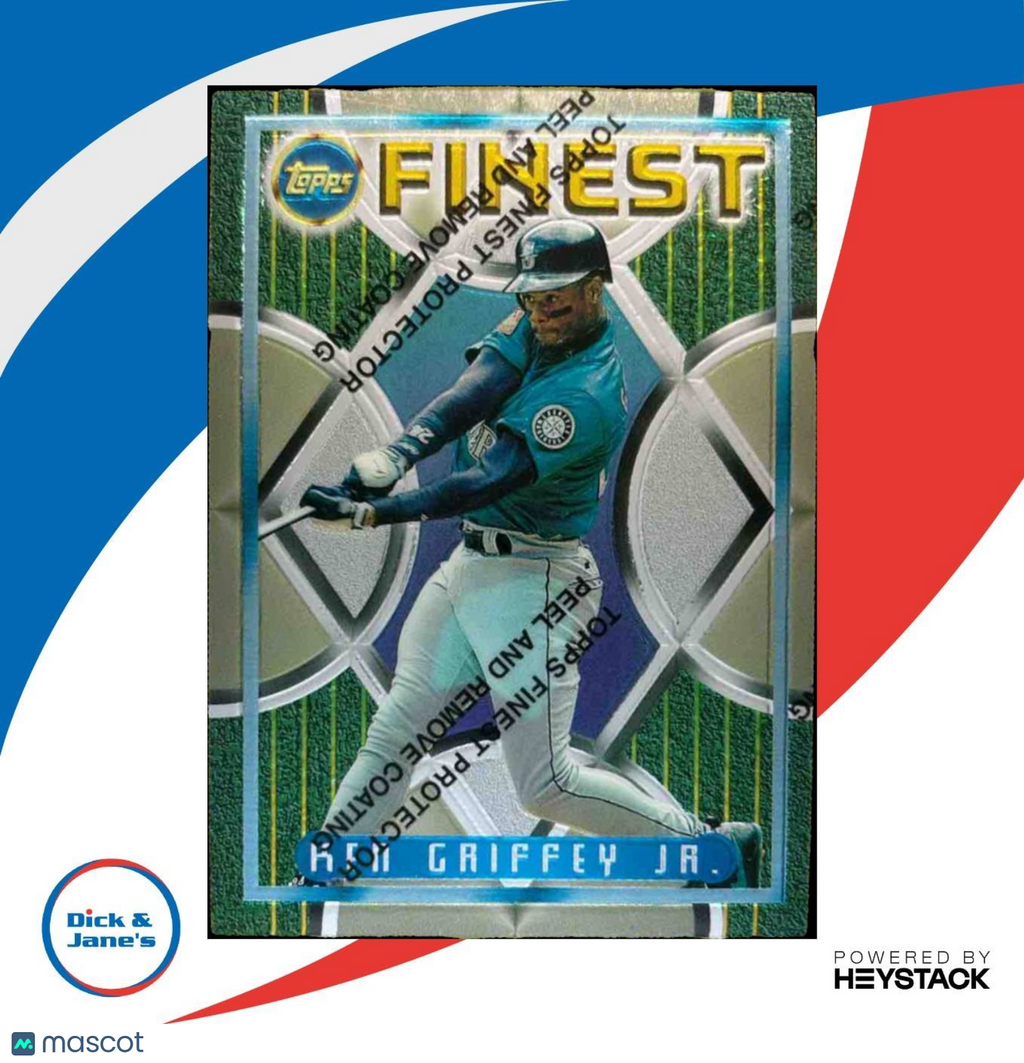 Rare 1995 Topps Finest Ken Griffey Jr. trading card, #118 for the Seattle Mariners. Mint condition, a must-have for any baseball card collector. This iconic MLB card features the legendary player in his prime. Don't miss out on adding this gem to your collection! Listed With Mascot.