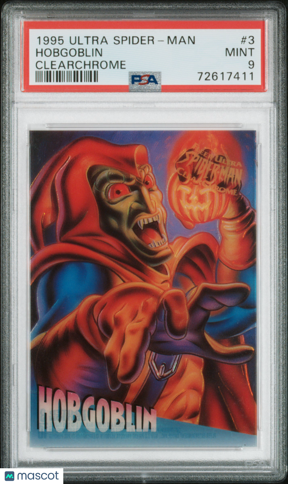 You are purchasing a 1995 Ultra Spider-Man Clearchrome Ultra Pro Hobgoblin #3 PSA 9. You will receive the exact item in the photographs. Thank you for looking. Listed With Mascot.