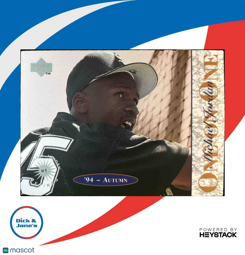 Rare 1995 Upper Deck Minor League Michael Jordan One On #9 trading card featuring the basketball legend in his baseball days. Limited edition collectible showcasing Jordan's transition to baseball. A must-have for any sports card collector or Jordan fan. #MichaelJordan #Collectible Listed With Mascot.