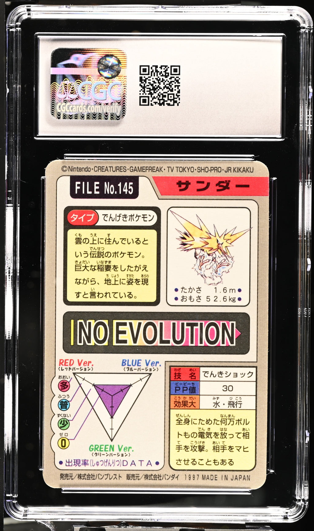 1996 Bandai Carddass Pokemon Part 2 Zapdos #145 Red Card Prism Holo CGC 8.5