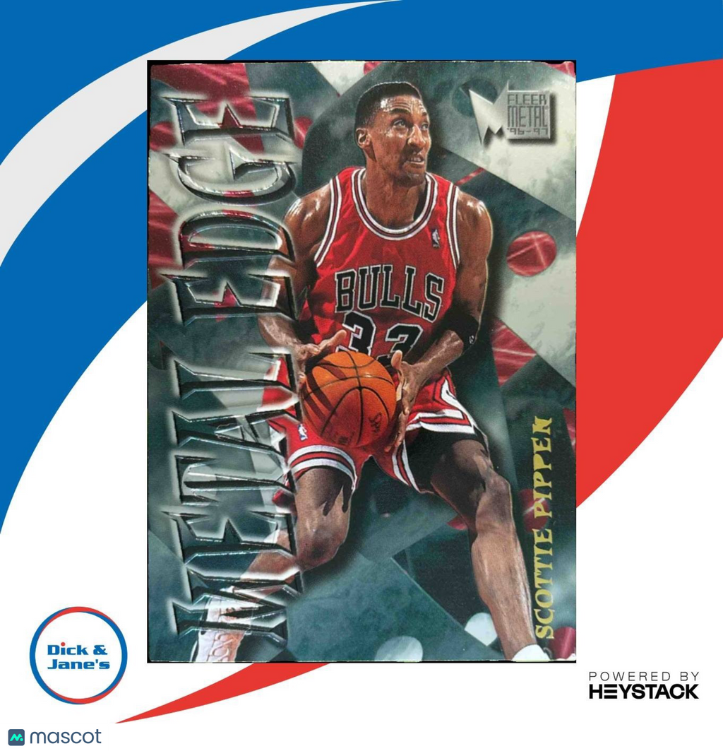 This 1996 Skybox Metal Scottie Pippen Edge #5 Chicago Bulls trading card is a must-have for any NBA fan or sports card collector. Featuring a stunning design and showcasing one of the greatest players in basketball history, this card is a rare find that is sure to be a standout in any collection. Don't miss your chance to own a piece of NBA history with this iconic Scottie Pippen trading card. Listed With Mascot.