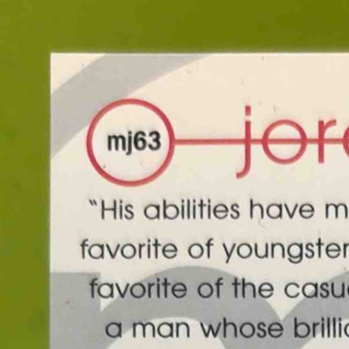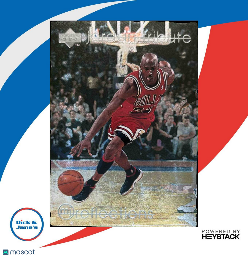 This 1997-98 Upper Deck Michael Jordan Tribute card #MJ63 captures the iconic Chicago Bulls player in action. A must-have for any NBA collector, this card showcases Jordan at the peak of his career. Add this rare and valuable piece to your collection today! Listed With Mascot.