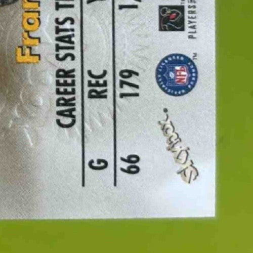 This 1998 Skybox Frank Wycheck Autographics #NNO sports trading card features a unique autograph from the player himself. Perfect for any football fan or trading card collector looking to add a rare piece to their collection. Don't miss out on owning this one-of-a-kind memorabilia! Listed With Mascot.