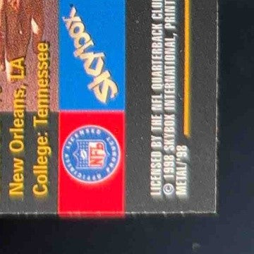 Own a piece of NFL history with this iconic 1998 Skybox Metal Universe Peyton Manning rookie card. Featuring the legendary quarterback in his Indianapolis Colts uniform, this rare and collectible card is a must-have for any football fan or card collector. Don't miss out on adding this gem to your collection! Listed With Mascot.
