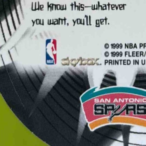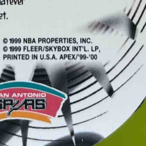 1999-00 Skybox Apex Tim Duncan Cutting Edge Plus #9 CE San Antonio Spurs Listed With Mascot.
