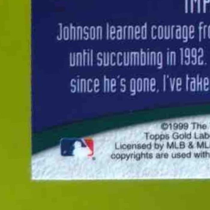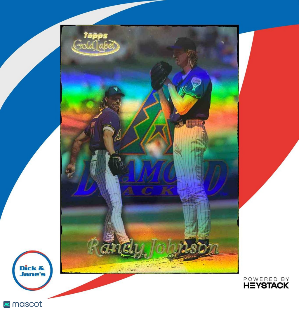 This 1999 Topps Gold Label Randy Johnson #43 card features the MLB legend in his Arizona Diamondbacks uniform. A must-have for any baseball card collector, this gold label edition showcases Johnson's dominance on the mound. Add this rare find to your collection today! Listed With Mascot.