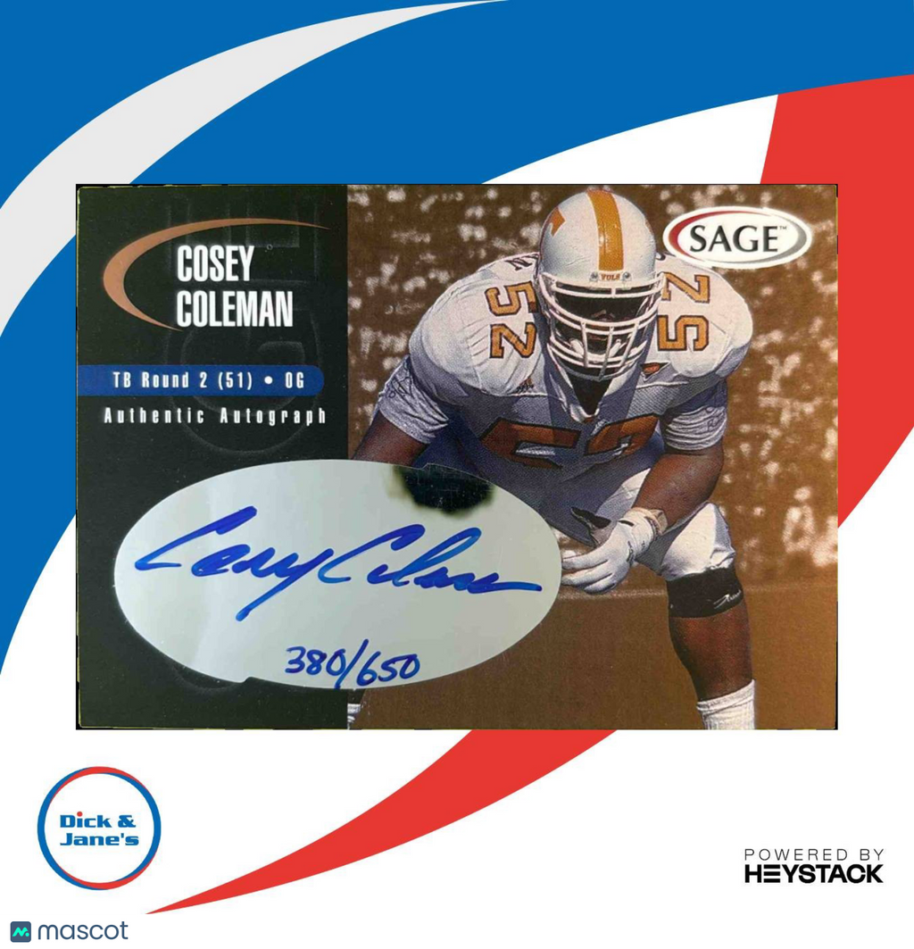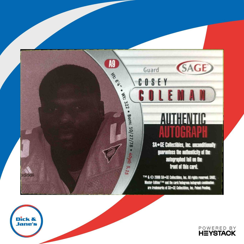 2000 SAGE Cosey Coleman Auto Bronze /650 #A9 Listed With Mascot.