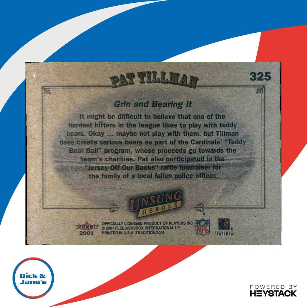 This rare 2001 Fleer Tradition Pat Tillman #325 RC Arizona Cardinals trading card is a must-have for football collectors. Featuring the late NFL star in his rookie year with the Cardinals, this card is a valuable addition to any collection. Don't miss your chance to own a piece of football history. Listed With Mascot.