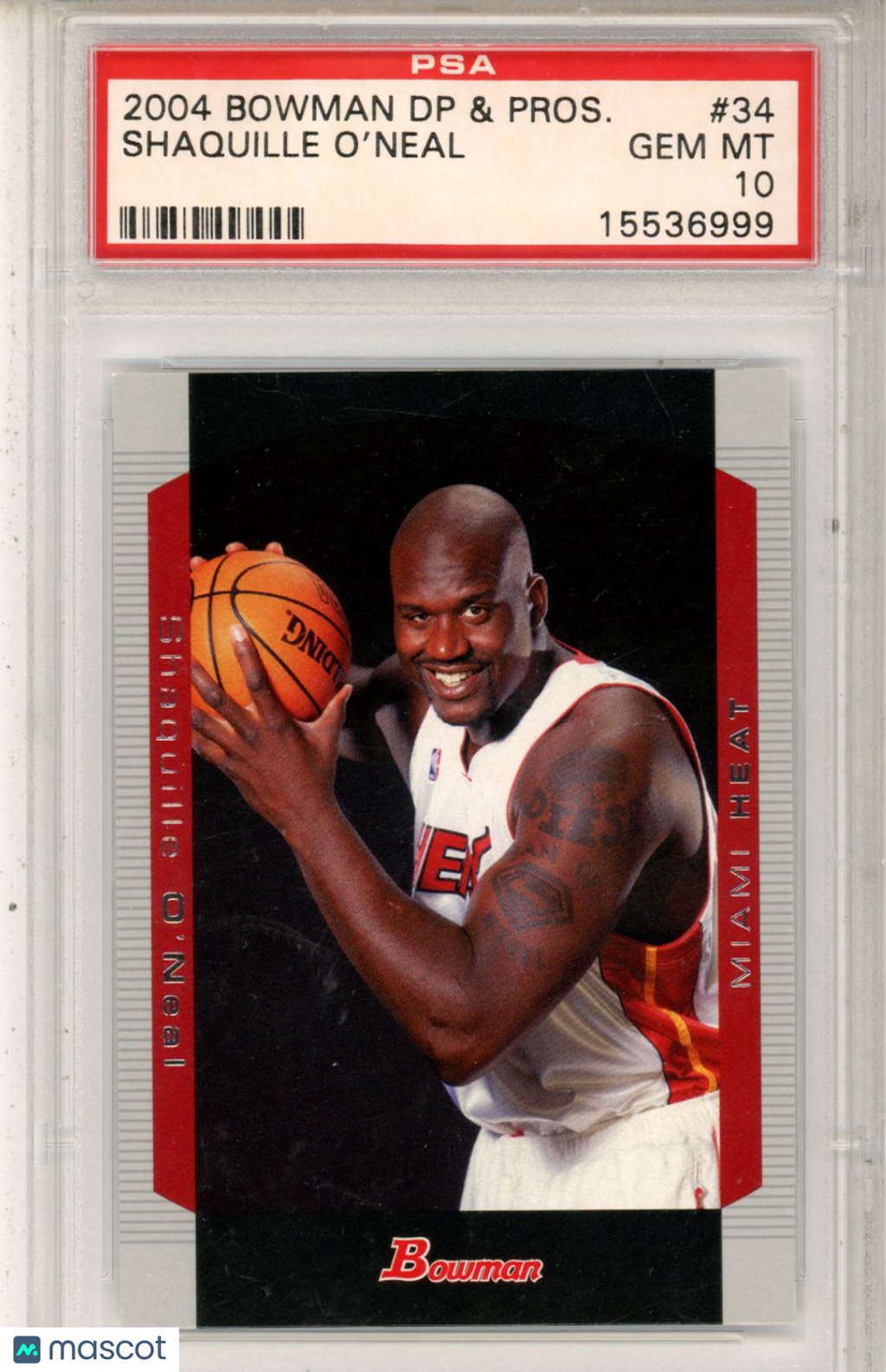 You are purchasing the following: 2004 Bowman Shaquille O'Neal #34 PSA 10 . You will receive the exact item in the photographs. Note: Please do not connact us and asking the following: 1. What is the lowest you would take? Just make an offer. If the offer is automatically declined, you have your answer. 2. What the best you can do? See above. Not repling to an email is a reply. 3. Any room on this? See above. Not repling to an offer is a reply. 4. We ONLY do one counter offer, so please make your best offer the first time! Note: If the price off, in your option, please send your resaoning and an offer. We will review it. Note: We manage nearly 10 millon cards regularly and will adjust prices as errors are noticed or pointed out! Listed With Mascot.