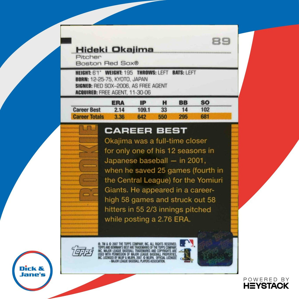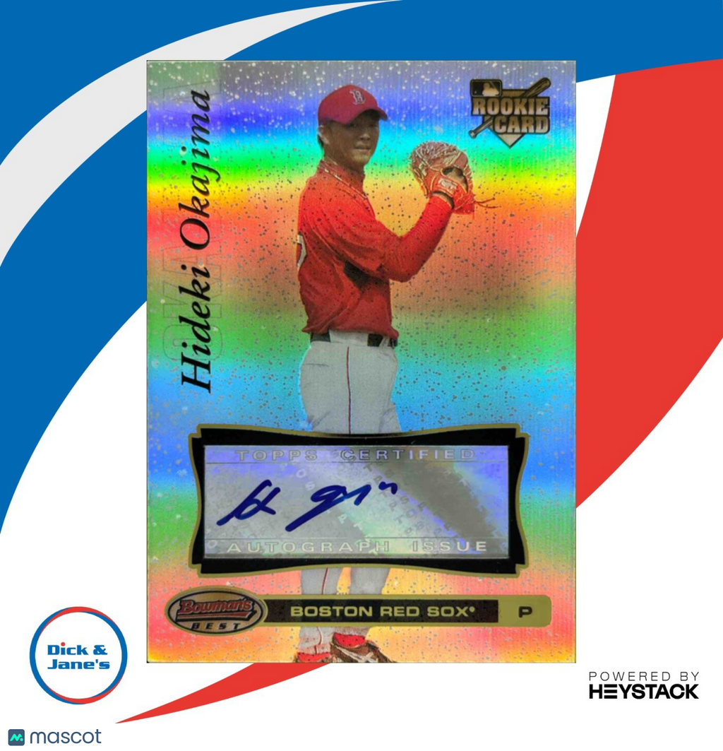 Powered by Frooition Home About Us Contact Other Baseball Baseball Rookies Baseball Inserts Baseball Game Used/Relics Baseball Autographed Football Football Rookies Football Inserts Football Game Used/Relics Football Autographed Basketball Basketball Rookies Basketball Inserts Basketball Game Used/Relics Basketball Autographed Hockey NASCAR Hard Cover Books Music CDs Baseball Boxes Baseball Pack Lots Football Boxes Football Pack Lots Other Boxes Othe Pack Lots Magic Singles 2007 Bowman 's Best Hideki Okajima #89 Auto RC Boston Red Sox 2007 Bowman 's Best Hideki Okajima #89 Auto RC Boston Red Sox Item Description 2007 Bowman's Best Hideki Okajima #89 Autograph Rookie Card featuring the Boston Red Sox pitcher. This highly sought after MLB card is a must-have for any collector. Don't miss your chance to own a piece of baseball history with this authentic autographed rookie card. About Us About Us PSA Grading Consignments Buying Cards EBay Live About Us Yes, there was a Dick & Jane! Originally founded in 1989, Dick & Jane's is Jacksonville's oldest hobby and collectibles store. Our focus is on the collector. We started small with comics, coins and cards and evolved based upon our customers needs and desired and now have 14 employees and over 5 million sportscards and nearly 700,000 different items on our dedicated singles sportscard website We have thousands of raw TCG cards in store. Magic the Gathering and Pokemon! We have Jacksonville s largest selection of graded sports and non-sports cards, all accessible on our website! We engage with our customers! Let us know what you would like to see in the store or changes you would suggest that we make. We would like to start hosting MONTHLY TRADE NIGHTS! We always are buying and trading! WE ARE THE LOCAL HOBBY STORE!!! Stop by if you are in the Jacksonville Area! We are right off I-95 near downtown. PSA Grading PSA Grading We