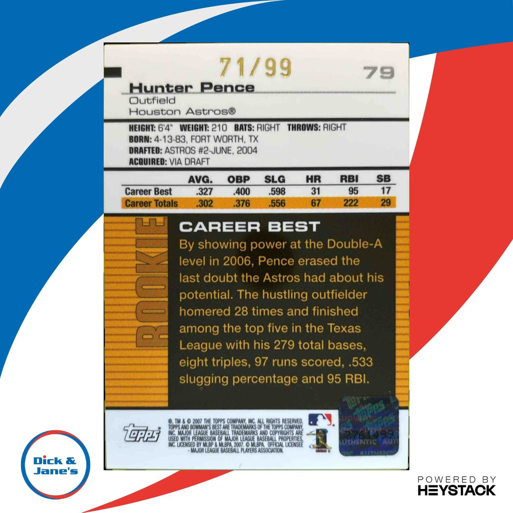 Powered by Frooition Home About Us Contact Other Baseball Baseball Rookies Baseball Inserts Baseball Game Used/Relics Baseball Autographed Football Football Rookies Football Inserts Football Game Used/Relics Football Autographed Basketball Basketball Rookies Basketball Inserts Basketball Game Used/Relics Basketball Autographed Hockey NASCAR Hard Cover Books Music CDs Baseball Boxes Baseball Pack Lots Football Boxes Football Pack Lots Other Boxes Othe Pack Lots Magic Singles 2007 Bowman 's Best Hunter Pence Blue 71/99 #79a RC Houston Astros 2007 Bowman 's Best Hunter Pence Blue 71/99 #79a RC Houston Astros Item Description Limited edition 2007 Bowman's Best Hunter Pence rookie card, featuring a stunning blue design. Only 71 out of 99 produced. A must-have for any collector or Houston Astros fan. Don't miss out on this rare and valuable piece of MLB history! About Us About Us PSA Grading Consignments Buying Cards EBay Live About Us Yes, there was a Dick & Jane! Originally founded in 1989, Dick & Jane's is Jacksonville's oldest hobby and collectibles store. Our focus is on the collector. We started small with comics, coins and cards and evolved based upon our customers needs and desired and now have 14 employees and over 5 million sportscards and nearly 700,000 different items on our dedicated singles sportscard website We have thousands of raw TCG cards in store. Magic the Gathering and Pokemon! We have Jacksonville s largest selection of graded sports and non-sports cards, all accessible on our website! We engage with our customers! Let us know what you would like to see in the store or changes you would suggest that we make. We would like to start hosting MONTHLY TRADE NIGHTS! We always are buying and trading! WE ARE THE LOCAL HOBBY STORE!!! Stop by if you are in the Jacksonville Area! We are right off I-95 near downtown. PSA Grading PSA Grading We