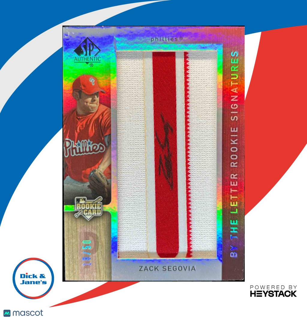 Own a piece of MLB history with this rare 2007 SP Authentic Zack Segovia trading card. Numbered 18 out of only 50 produced, this autographed rookie card features a signature from the former Philadelphia Phillies pitcher. Perfect for collectors and fans alike, add this gem to your collection today! Listed With Mascot.