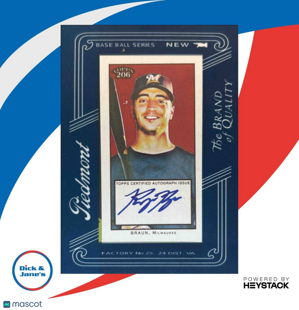This rare and sought-after 2009 Topps 206 Ryan Braun Mini Framed Auto card is a must-have for any Milwaukee Brewers fan or sports card collector. Featuring an authentic autograph from Braun himself, this MLB card is a unique and valuable addition to any collection. Don't miss out on the chance to own a piece of baseball history! Listed With Mascot.