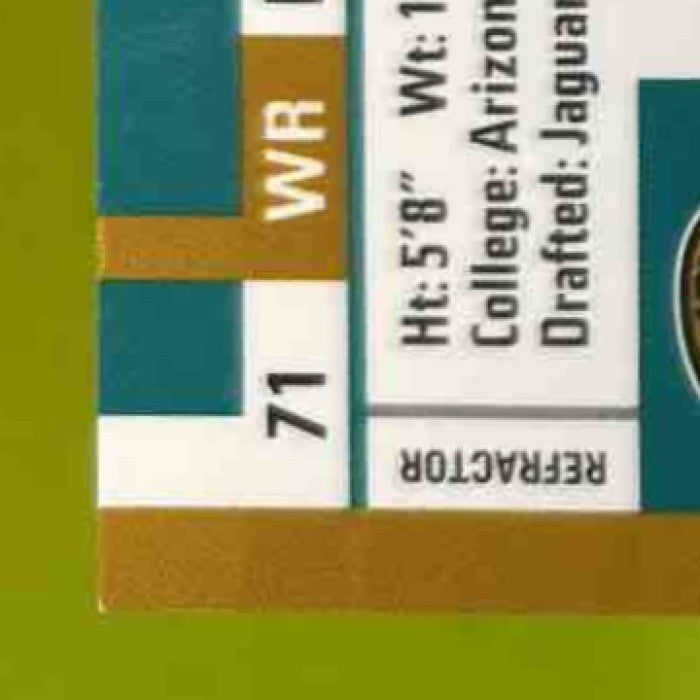 Add this rare and highly collectible 2009 Topps Finest Mike Thomas Rookie Jersey Gold Auto card to your collection! Featuring an autograph and piece of jersey from the Jacksonville Jaguars player, this limited edition card is numbered out of only 25. A must-have for any football card enthusiast. Listed With Mascot.