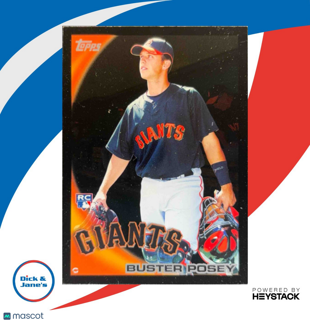 This rare 2010 Topps Buster Posey Black Border Parallel #2 RC San Francisco Giants Rookie card is a must-have for any serious MLB collector. Featuring a striking black border and Posey's iconic rookie image, this card is a valuable addition to any collection. Don't miss out on the chance to own a piece of baseball history! Listed With Mascot.