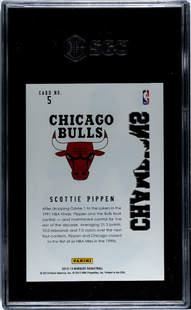 You are purchasing the following: 2012 Panini Marquee Scottie Pippen Champions #5 SGC 10 Chicago Bulls. You will receive the exact item in the photographs. Note: Please do not connact us and asking the following: 1. What is the lowest you would take? Just make an offer. If the offer is automatically declined, you have your answer. 2. What the best you can do? See above. Not repling to an email is a reply. 3. Any room on this? See above. Not repling to an offer is a reply. 4. We ONLY do one counter offer, so please make your best offer the first time! Note: If the price off, in your option, please send your resaoning and an offer. We will review it. Note: We manage nearly 10 millon cards regularly and will adjust prices as errors are noticed or pointed out! Listed With Mascot.