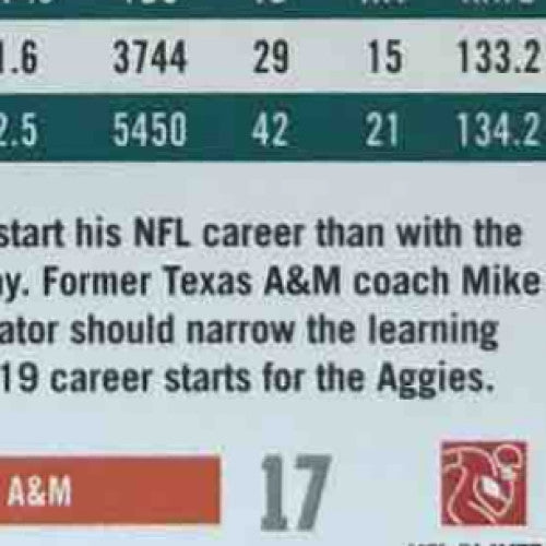 Authentic 2012 Panini Rookies & Stars trading card featuring NFL quarterback Ryan Tannehill. Limited edition #220 rookie card autographed and patch design, numbered out of 499. Perfect for any sports memorabilia collector or die-hard Miami Dolphins fan. Don't miss out on this rare find! Listed With Mascot.