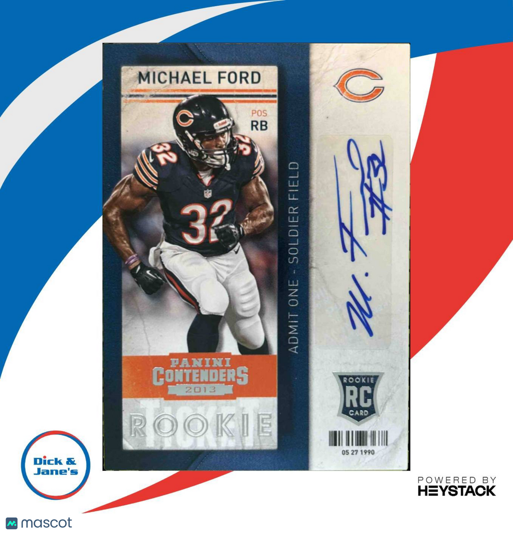 2013 Panini Contenders Michael Ford #198a RC Auto Chicago Bears Listed With Mascot.