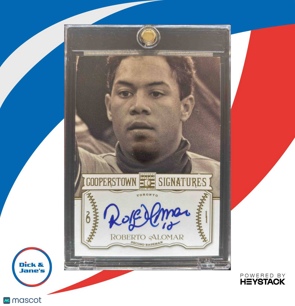 Don't miss out on owning a piece of baseball history with this 2013 Panini Cooperstown Roberto Alomar Signatures /125 Auto Toronto Blue Jays trading card. This MLB card features a rare autograph from the legendary player. Add this collectible item to your collection today! Listed With Mascot.