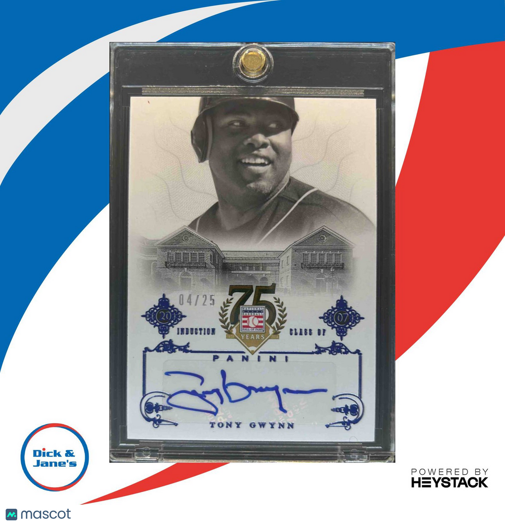 2014 Panini Hall of Fame 75th #64 Tony Gwynn Signatures Blue /25 Auto San Diego Listed With Mascot.