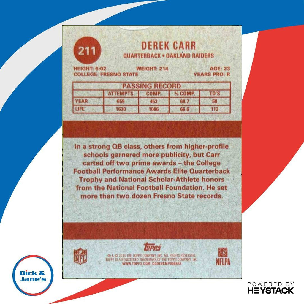 2014 Topps Derek Carr 1963 Mini #211 RC Oakland Raiders Listed With Mascot.
