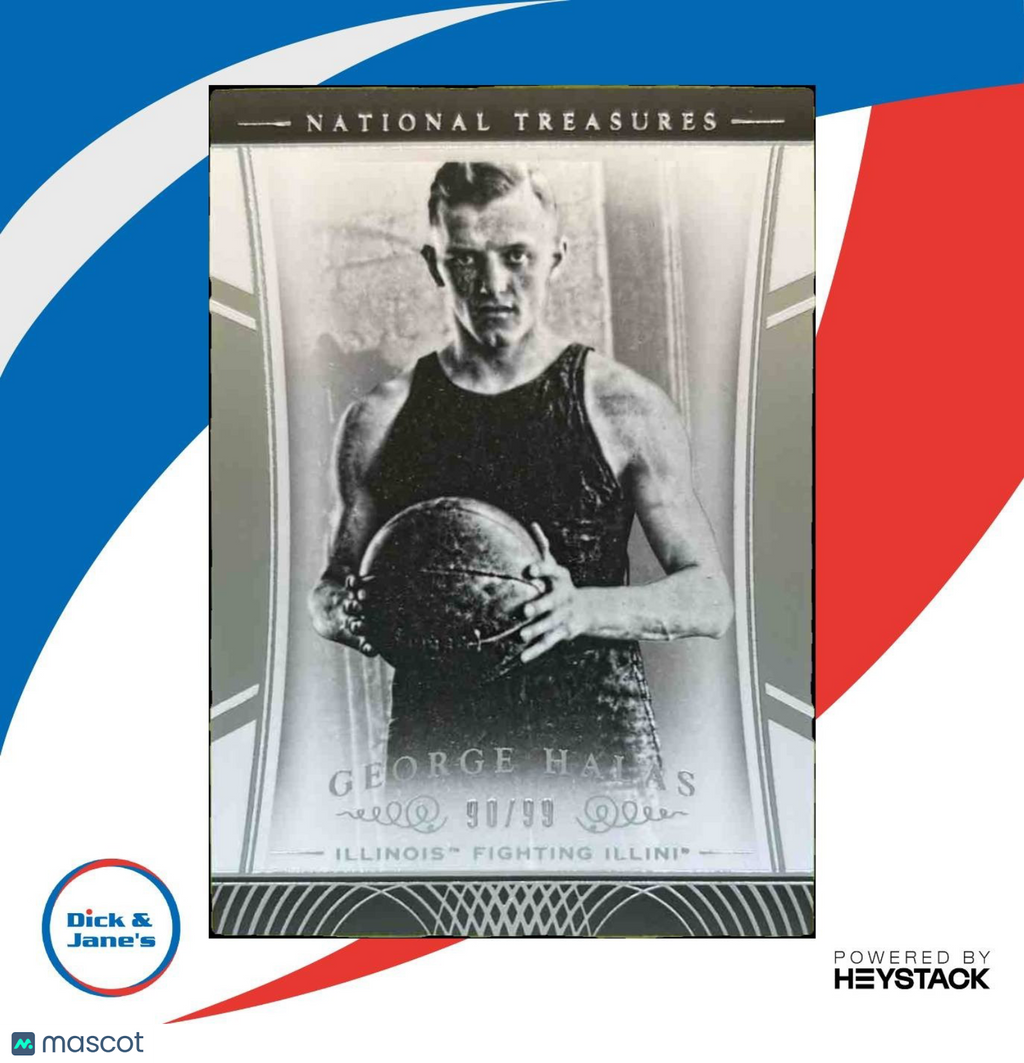 Own a piece of sports history with this 2015 Panini National Treasures Collegiate George Halas trading card. Limited to only 99 copies, this card features the legendary football player and coach known as the Papa Bear. Perfect for any collector or fan of the game. Listed With Mascot.