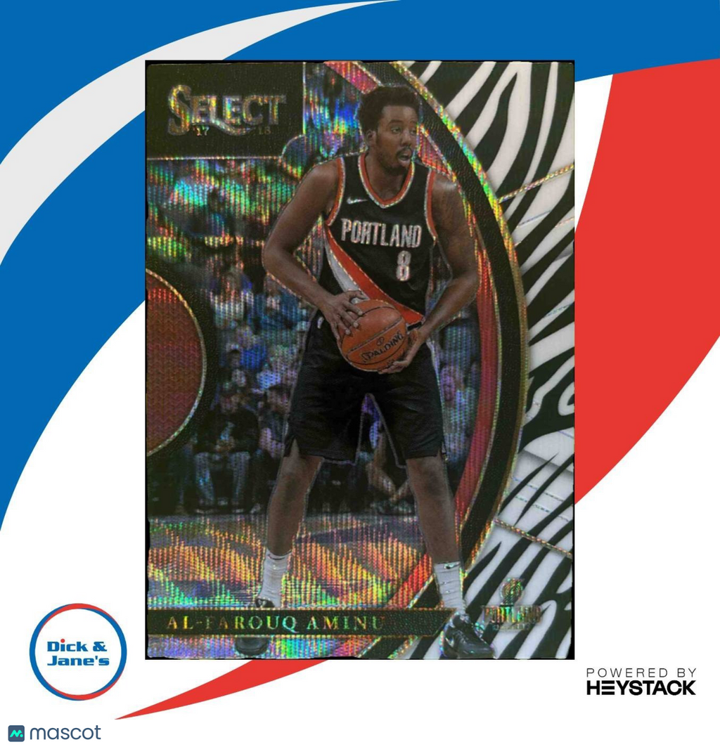 This 2017-18 Panini Select Al-Farouq Aminu Zebra Prizms #7 trading card is a must-have for Portland Trail Blazers fans. With its unique zebra print design and rare Concourse level designation, this NBA collectible is sure to be a standout in any sports card collection. Don't miss out on adding this special card to your memorabilia today! Listed With Mascot.