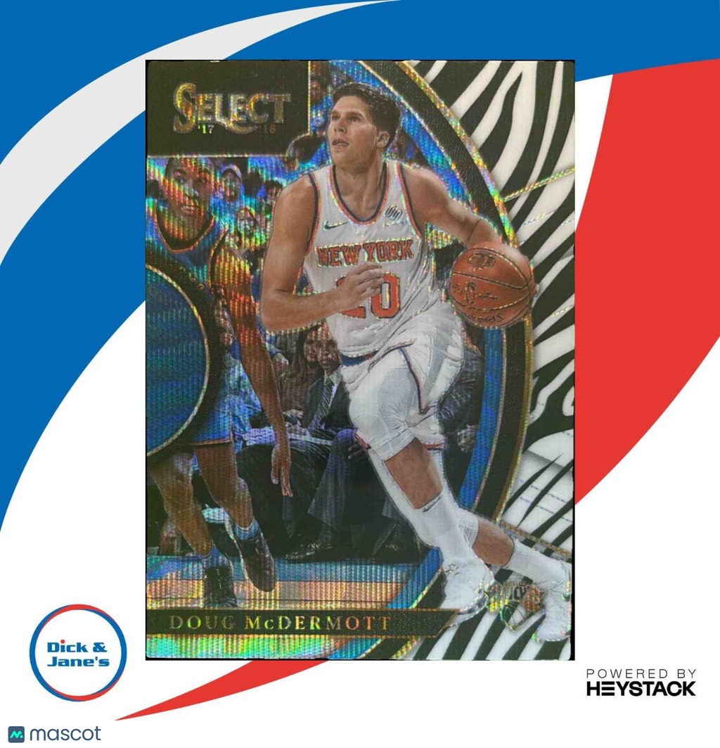 This rare 2017-18 Panini Select Doug McDermott Zebra Prizms #21 Concourse trading card features the talented New York Knicks player in stunning detail. A must-have for any NBA card collector, this limited edition card is a standout addition to any collection. Don't miss your chance to own this unique piece of basketball history! Listed With Mascot.