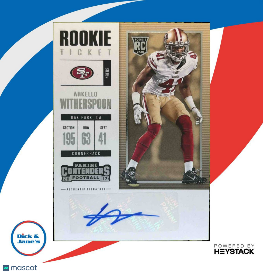 2017 Panini Contenders Ahkello Witherspoon #172 RC Rookie Ticket Auto 49ers Listed With Mascot.