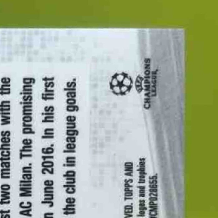 A rare and collectible 2017 Topps Chrome UEFA Champions League trading card featuring Italian soccer star Stephan El Shaarawy. Limited to only 99 copies worldwide, this green parallel card showcases El Shaarawy in his AS Roma kit. A must-have for any football card collector! Listed With Mascot.