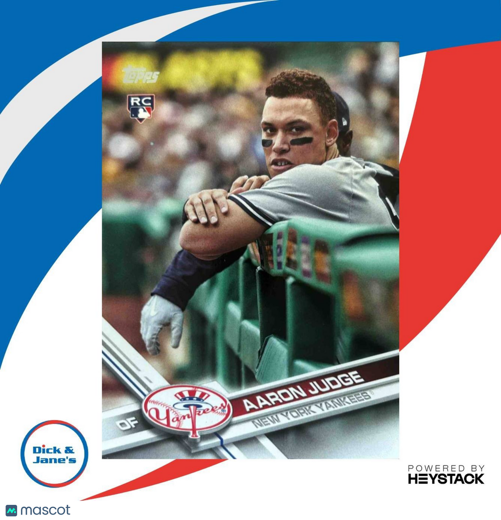 Get your hands on the highly sought after 2017 Topps Update Aaron Judge Set Variations #287 RC New York Yankees trading card. This MLB rookie card is a must-have for any collector, featuring the rising star Aaron Judge in his early days with the New York Yankees. Don't miss out on adding this rare and valuable card to your collection! Listed With Mascot.