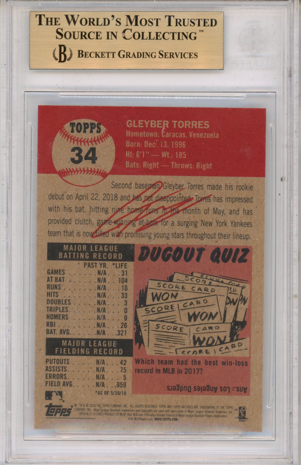 You are purchasing the following: 2018 Topps Living Gleyber Torres /28,550 #34 BGS 9.5 . You will receive the exact item in the photographs. Note: Please do not connact us and asking the following: 1. What is the lowest you would take? Just make an offer. If the offer is automatically declined, you have your answer. 2. What the best you can do? See above. Not repling to an email is a reply. 3. Any room on this? See above. Not repling to an offer is a reply. 4. We ONLY do one counter offer, so please make your best offer the first time! Note: If the price off, in your option, please send your resaoning and an offer. We will review it. Note: We manage nearly 10 millon cards regularly and will adjust prices as errors are noticed or pointed out! Listed With Mascot.