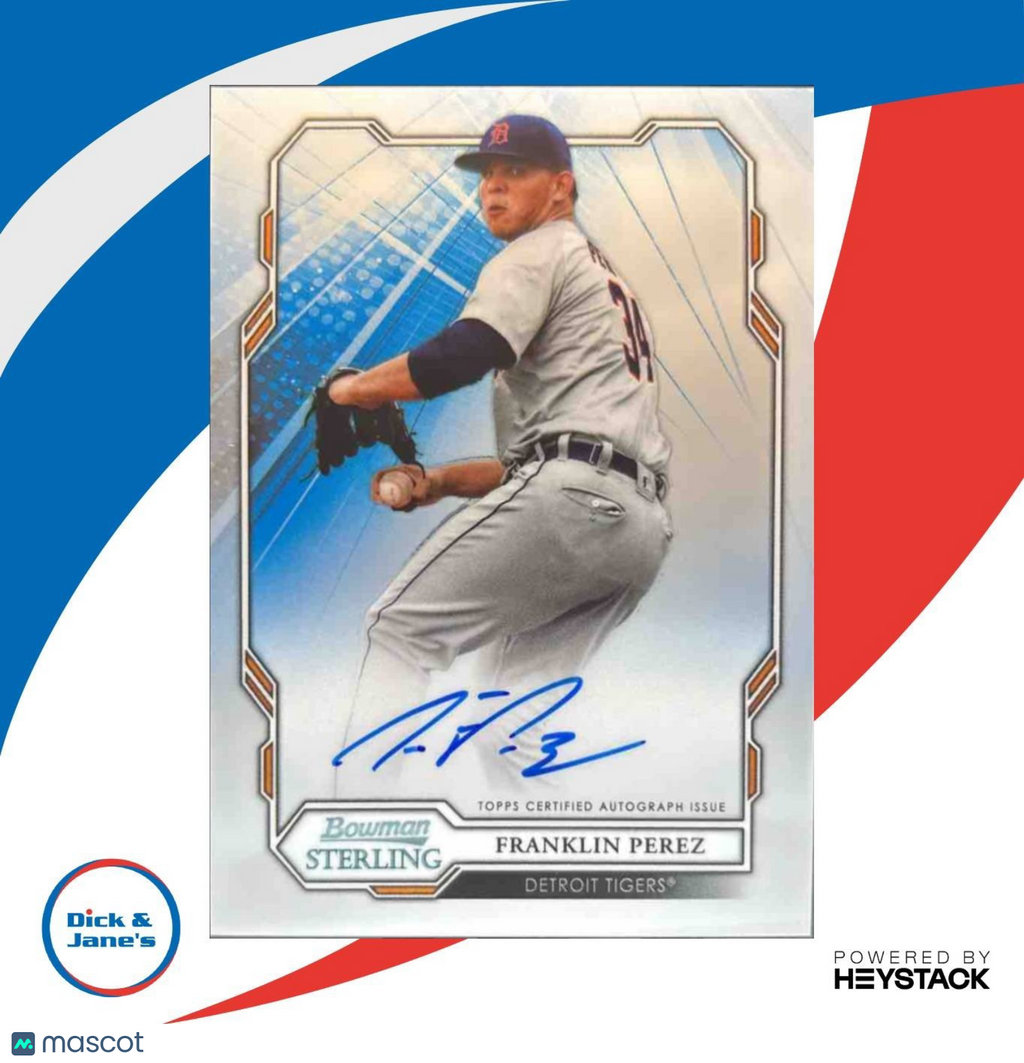 This 2019 Bowman Sterling Franklin Perez Prospect & Rookie Auto card features an autograph from the Detroit Tigers' rising star. A must-have for collectors, this MLB card showcases the talent and potential of Perez. Add this rare find to your collection today! Listed With Mascot.