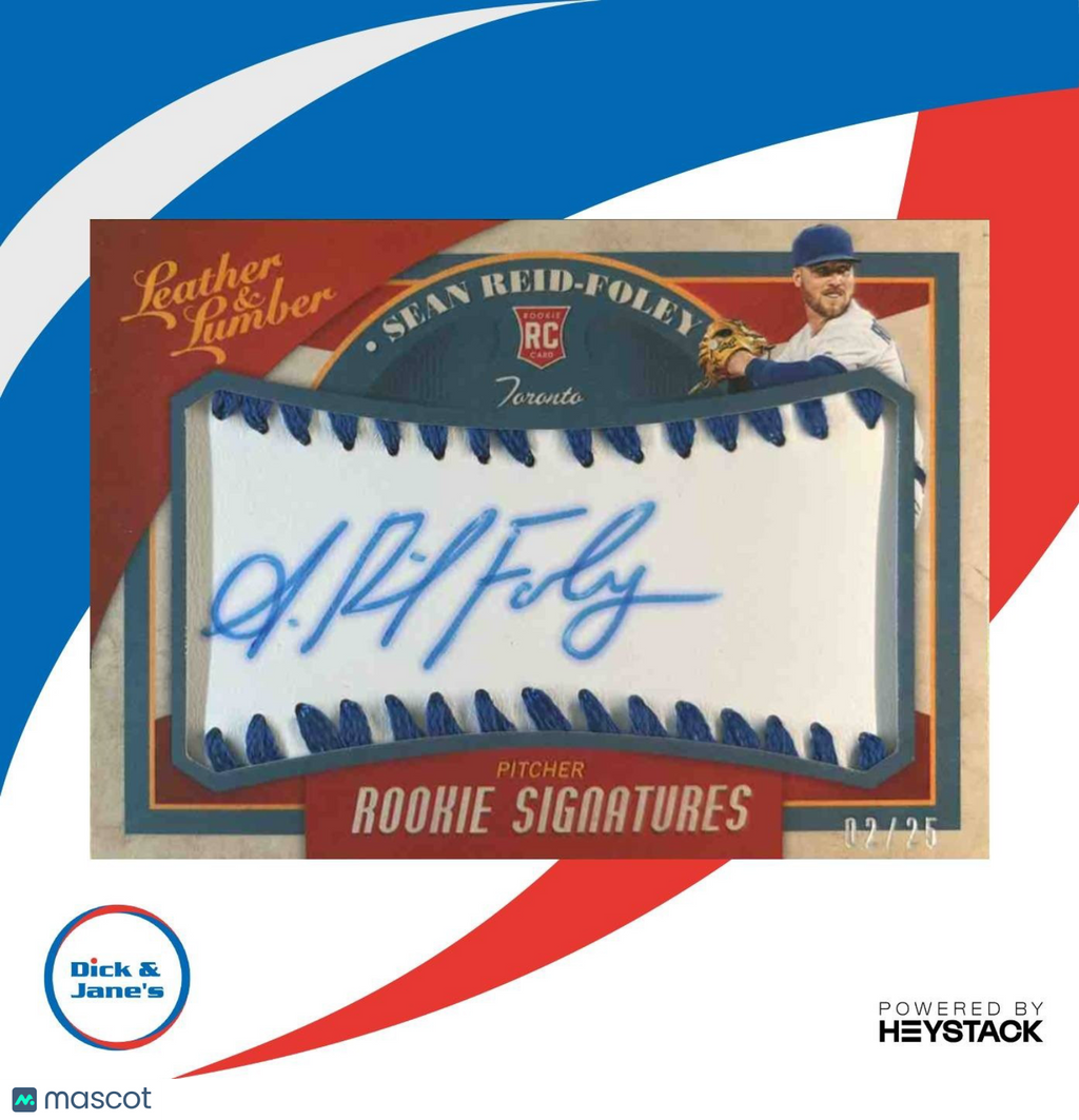 This rare 2019 Leather & Lumber Sean Reid Foley Rookie Signature Silver #117 Blue Jays trading card is a must-have for any MLB collector. Limited edition with only 25 produced, this RC Auto card features an authentic signature from the rising star. Don't miss your chance to own a piece of baseball history. Listed With Mascot.