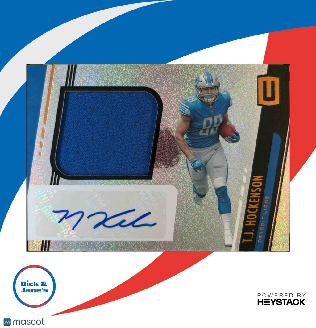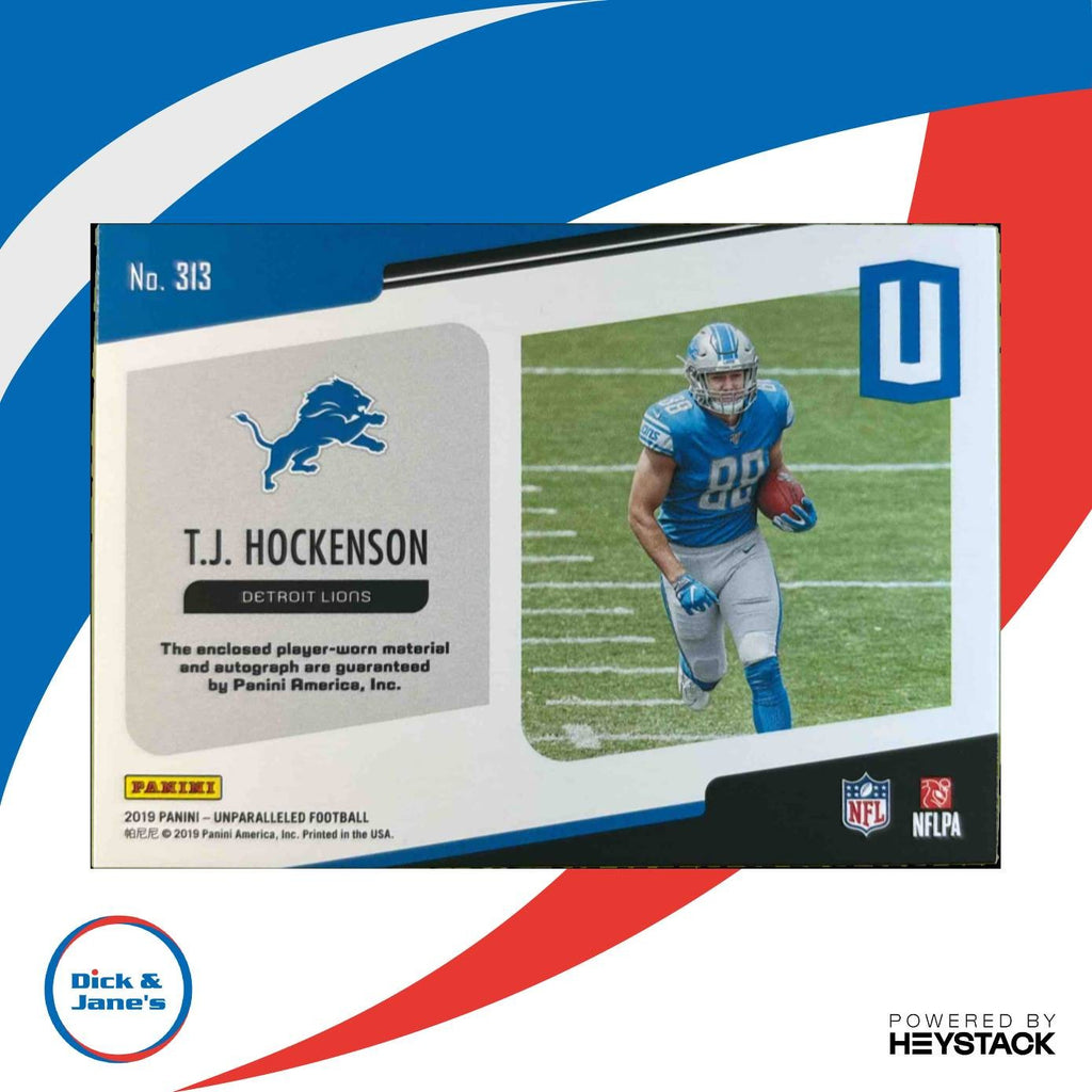 2019 Panini Unparalleled T.J. Hockenson Rookie Jersey Auto #313 RC Detroit Lions Listed With Mascot.