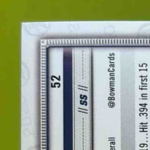 This 2020 Bowman Bo Bichette #52 RC card is a must-have for any Toronto Blue Jays fan or sports card collector. Featuring the highly sought-after rookie card of Bo Bichette, this MLB card is sure to be a valuable addition to any collection. Don't miss out on owning a piece of baseball history! Listed With Mascot.