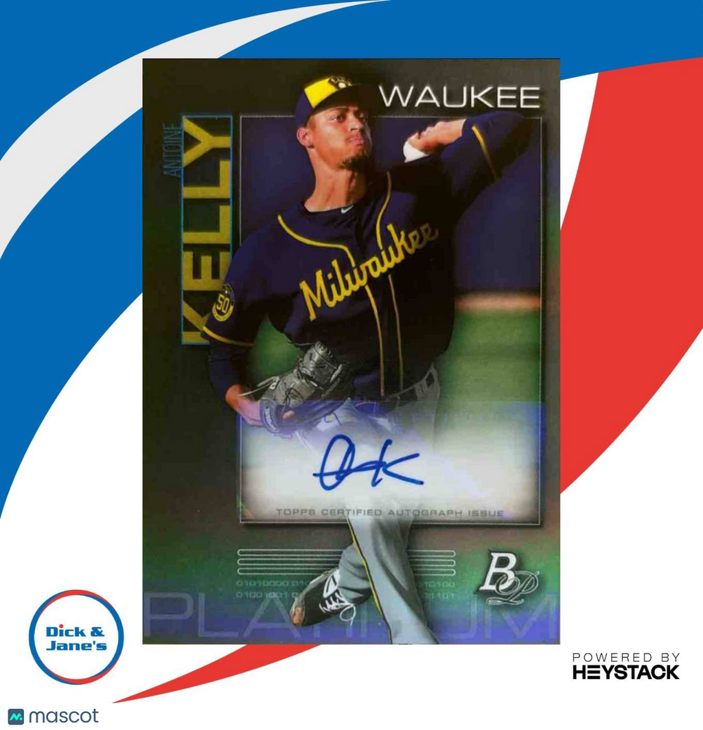 This rare 2020 Bowman Platinum Antoine Kelly Top Prospect Auto #TOP-45 trading card is a must-have for Milwaukee Brewers fans and MLB collectors. Featuring an authentic autograph from the top prospect, this card is a valuable addition to any sports card collection. Don't miss your chance to own this prized piece of memorabilia! Listed With Mascot.