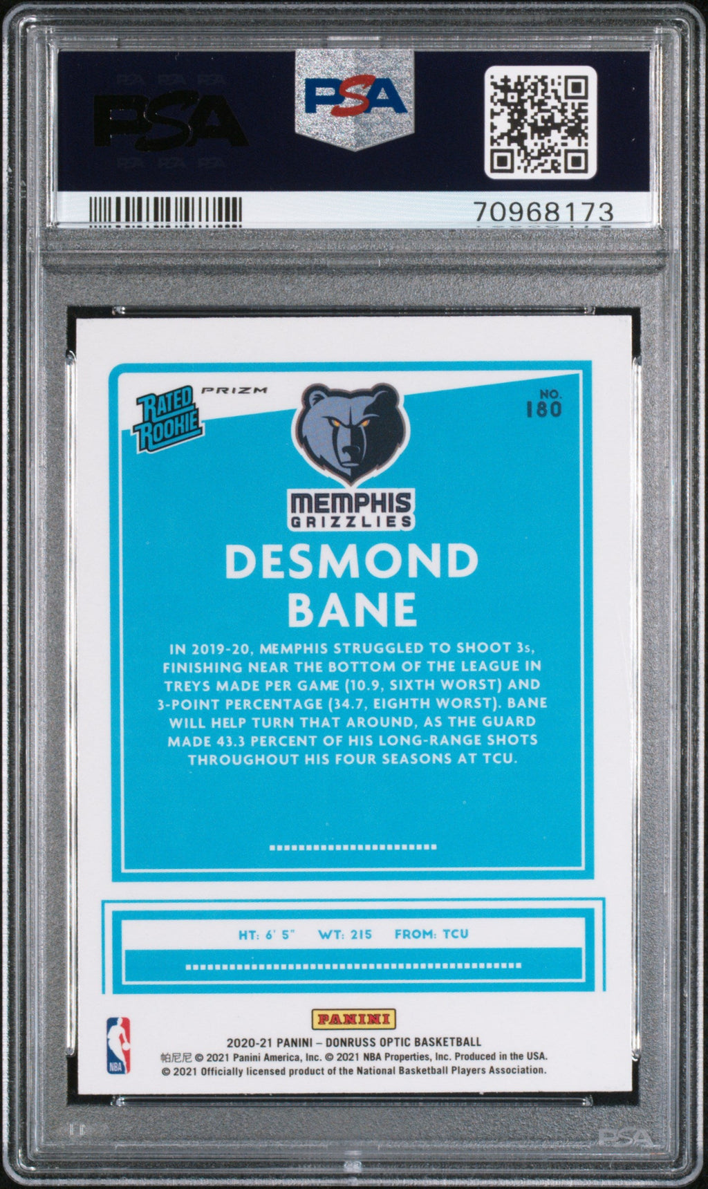 You are purchasing the following: 2020 Panini Donruss Optic Desmond Bane Hyper Pink Rookie #180 PSA 9 Memphis Grizzlies. You will receive the exact item in the photographs. Note: Please do not connact us and asking the following: 1. What is the lowest you would take? Just make an offer. If the offer is automatically declined, you have your answer. 2. What the best you can do? See above. Not repling to an email is a reply. 3. Any room on this? See above. Not repling to an offer is a reply. 4. We ONLY do one counter offer, so please make your best offer the first time! Note: If the price off, in your option, please send your resaoning and an offer. We will review it. Note: We manage nearly 10 millon cards regularly and will adjust prices as errors are noticed or pointed out! Listed With Mascot.