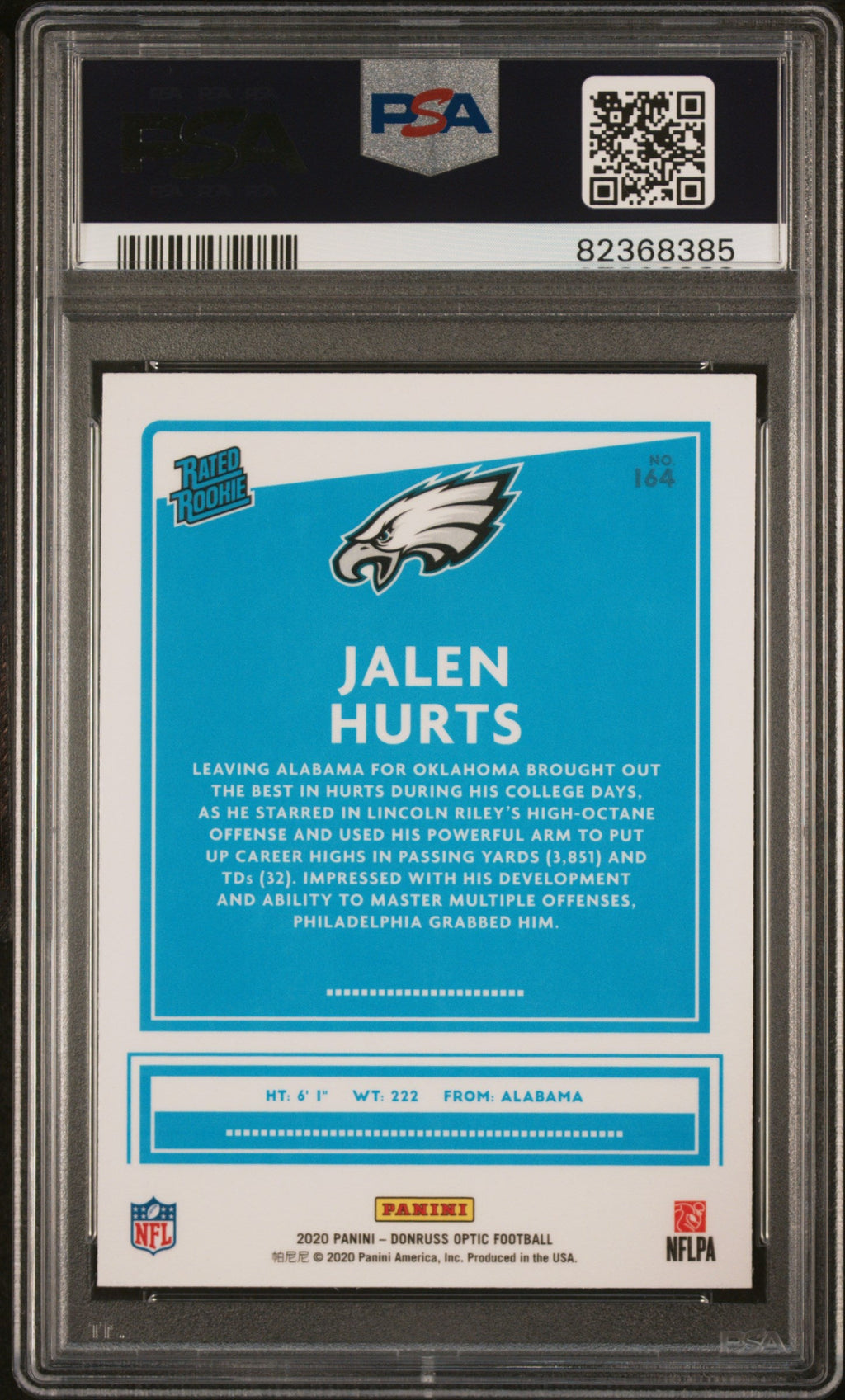 You are purchasing the following: 2020 Panini Donruss Optic Jalen Hurts #164 PSA 10 . You will receive the exact item in the photographs. Note: Please do not connact us and asking the following: 1. What is the lowest you would take? Just make an offer. If the offer is automatically declined, you have your answer. 2. What the best you can do? See above. Not repling to an email is a reply. 3. Any room on this? See above. Not repling to an offer is a reply. 4. We ONLY do one counter offer, so please make your best offer the first time! Note: If the price off, in your option, please send your resaoning and an offer. We will review it. Note: We manage nearly 10 millon cards regularly and will adjust prices as errors are noticed or pointed out!