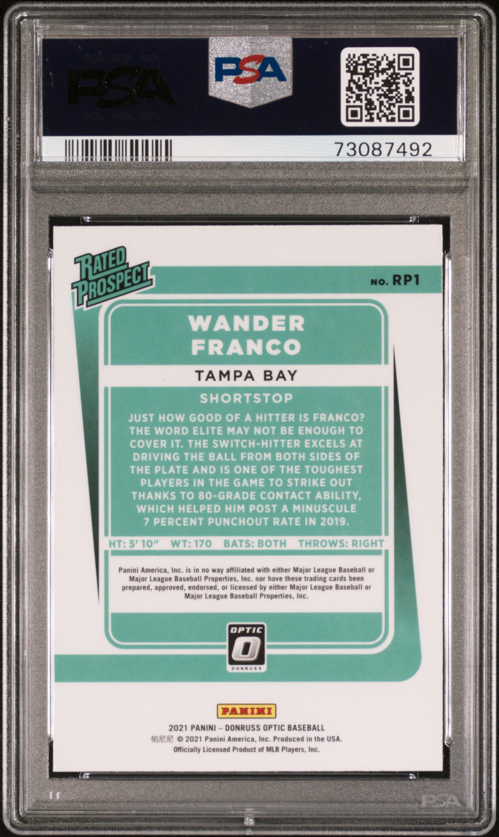 2020 Panini Donruss Optic Rated Prospects Wander Franco Rated Prospects PSA 10