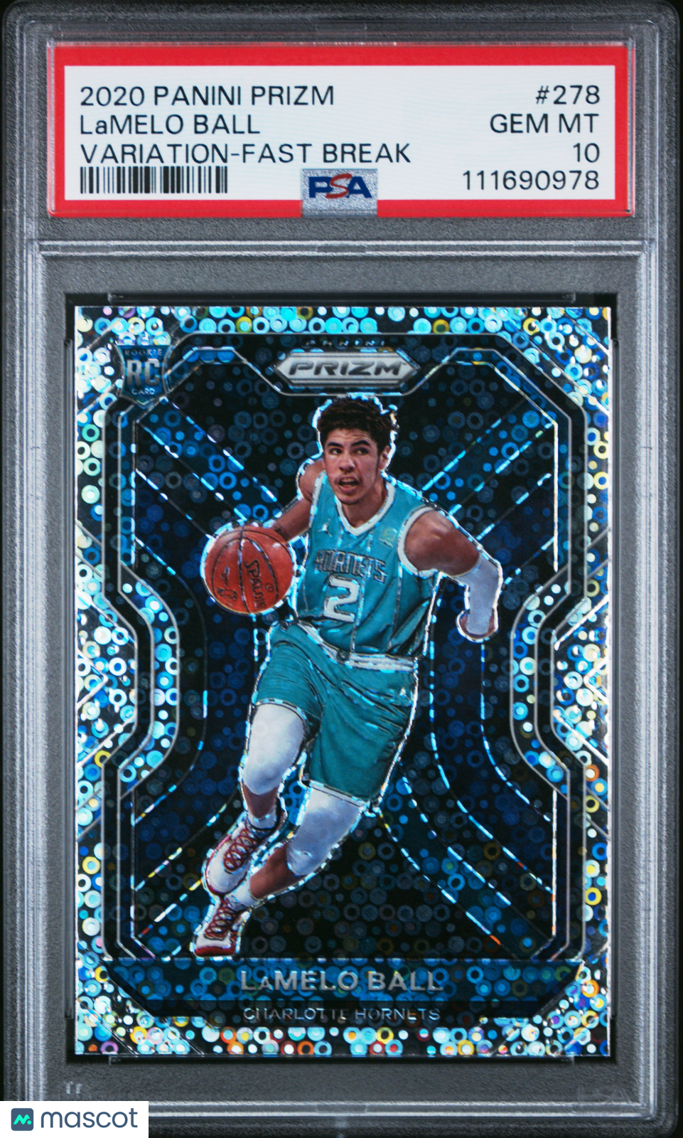 You are purchasing the following: 2020 Panini Prizm Lamelo Ball Variation Fast Break Rookie #278 PSA 10 Charlotte Hornets. You will receive the exact item in the photographs. Note: Please do not connact us and asking the following: 1. What is the lowest you would take? Just make an offer. If the offer is automatically declined, you have your answer. 2. What the best you can do? See above. Not repling to an email is a reply. 3. Any room on this? See above. Not repling to an offer is a reply. 4. We ONLY do one counter offer, so please make your best offer the first time! Note: If the price off, in your option, please send your resaoning and an offer. We will review it. Note: We manage nearly 10 millon cards regularly and will adjust prices as errors are noticed or pointed out! Listed With Mascot.