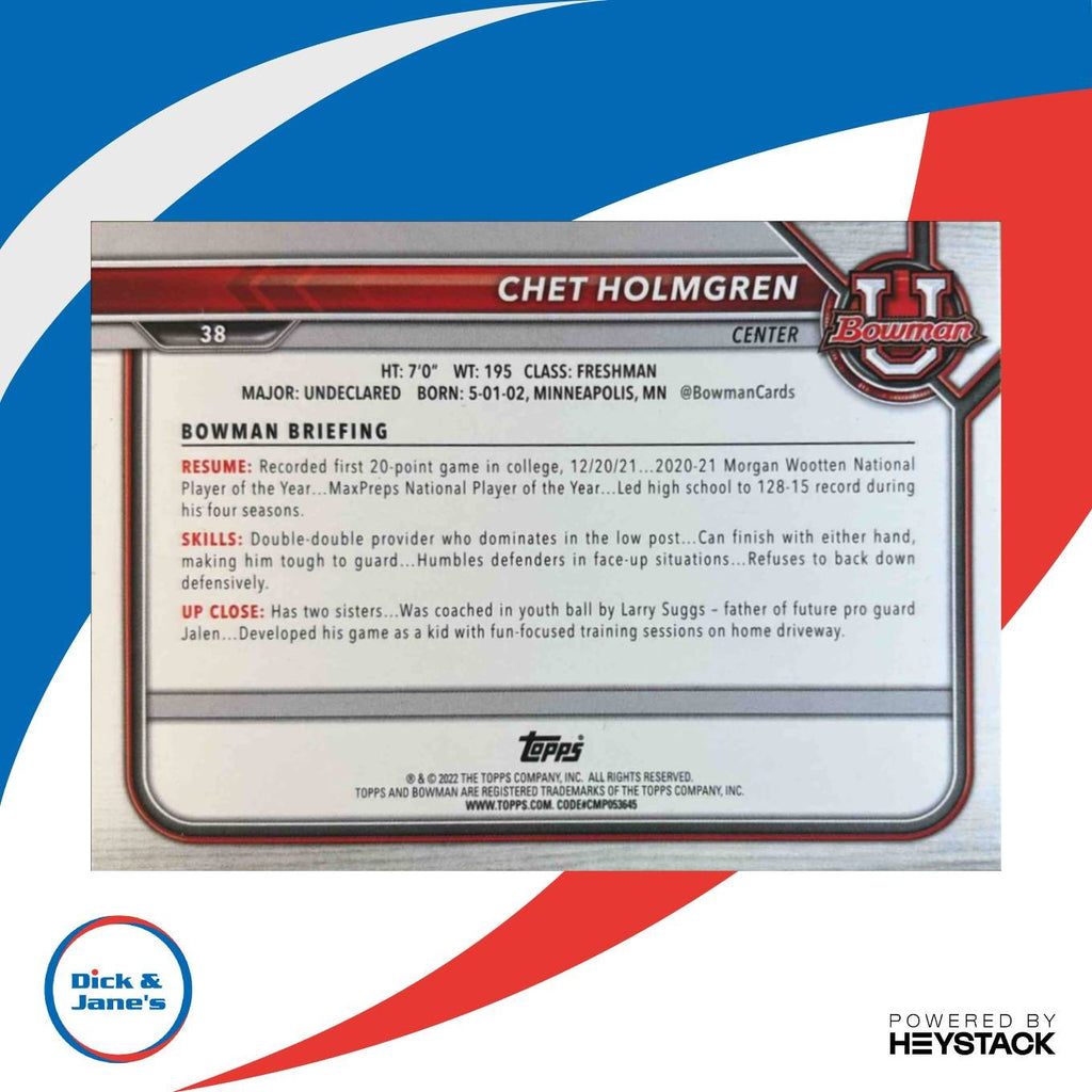 2021-22 Bowman University Chet Holmgren #38 Gonzaga Bulldogs