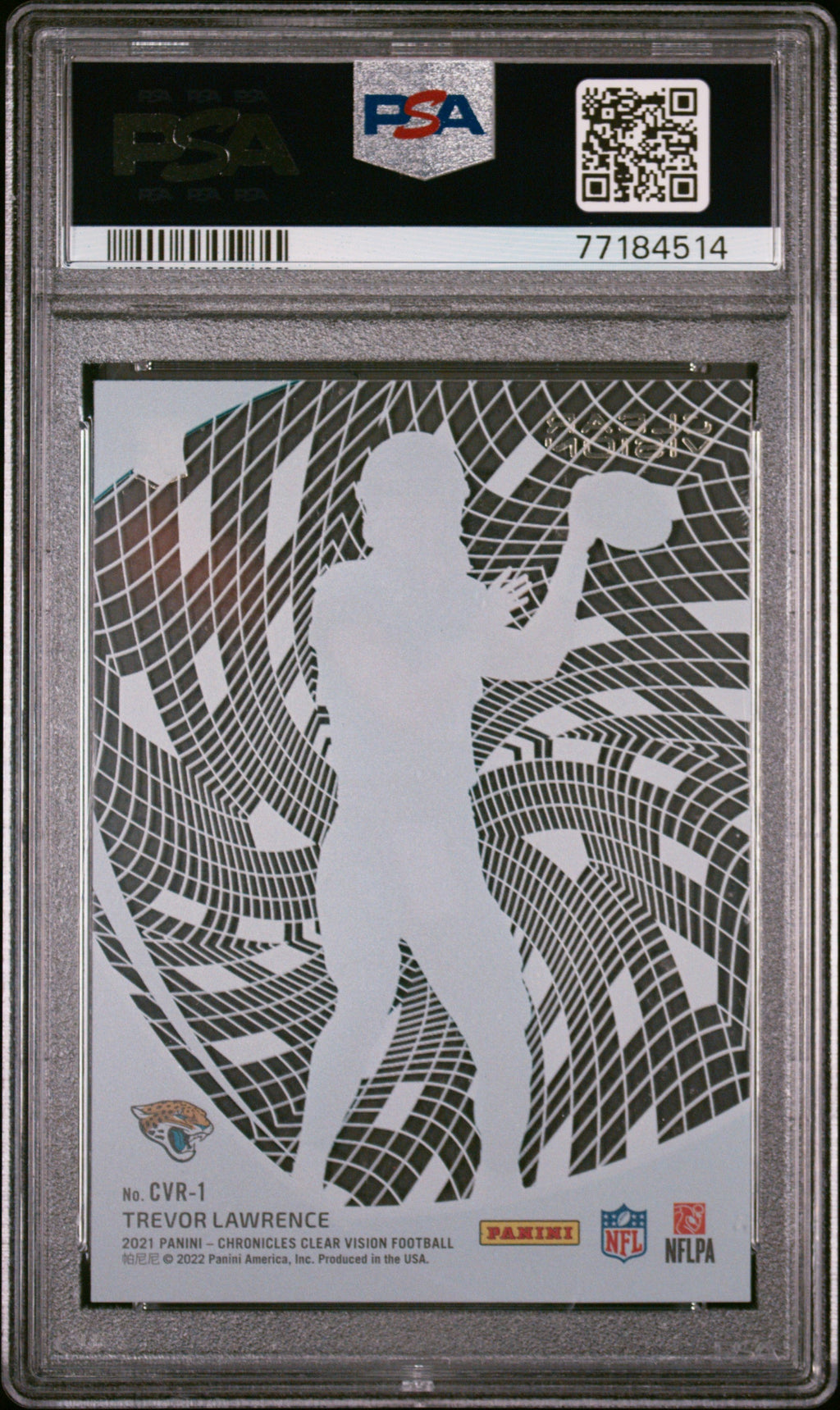 You are purchasing the following: 2021 Panini Chronicles Clear Vision Rookies Trevor Lawrence Rookie #CVR-1 PSA 10 Jacksonville Jaguars. You will receive the exact item in the photographs. Note: Please do not connact us and asking the following: 1. What is the lowest you would take? Just make an offer. If the offer is automatically declined, you have your answer. 2. What the best you can do? See above. Not repling to an email is a reply. 3. Any room on this? See above. Not repling to an offer is a reply. 4. We ONLY do one counter offer, so please make your best offer the first time! Note: If the price off, in your option, please send your resaoning and an offer. We will review it. Note: We manage nearly 10 millon cards regularly and will adjust prices as errors are noticed or pointed out! Listed With Mascot.