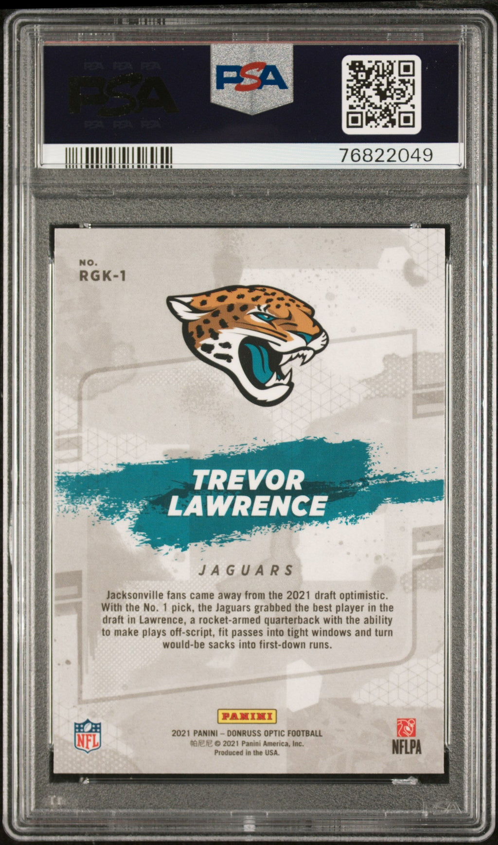 You are purchasing the following: 2021 Panini Donruss Optic Rookie Gridiron Kings Trevor Lawrence Rookie #RGK1 PSA 10 Jacksonville Jaguars. You will receive the exact item in the photographs. Note: Please do not connact us and asking the following: 1. What is the lowest you would take? Just make an offer. If the offer is automatically declined, you have your answer. 2. What the best you can do? See above. Not repling to an email is a reply. 3. Any room on this? See above. Not repling to an offer is a reply. 4. We ONLY do one counter offer, so please make your best offer the first time! Note: If the price off, in your option, please send your resaoning and an offer. We will review it. Note: We manage nearly 10 millon cards regularly and will adjust prices as errors are noticed or pointed out! Listed With Mascot.