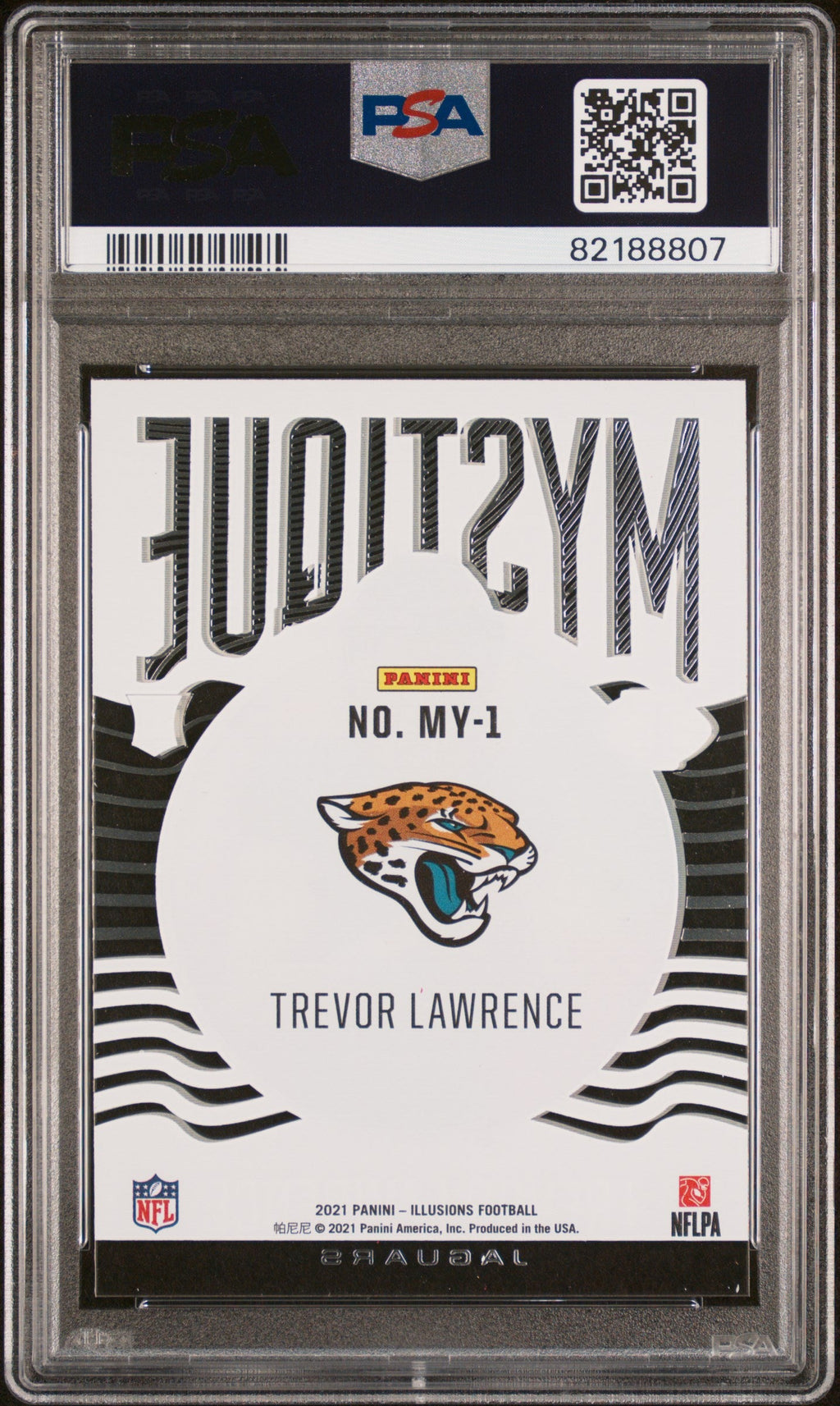 You are purchasing the following: 2021 Panini Illusions Mystique Trevor Lawrence Rookie #MY-1 PSA 10 Jacksonville Jaguars. You will receive the exact item in the photographs. Note: Please do not connact us and asking the following: 1. What is the lowest you would take? Just make an offer. If the offer is automatically declined, you have your answer. 2. What the best you can do? See above. Not repling to an email is a reply. 3. Any room on this? See above. Not repling to an offer is a reply. 4. We ONLY do one counter offer, so please make your best offer the first time! Note: If the price off, in your option, please send your resaoning and an offer. We will review it. Note: We manage nearly 10 millon cards regularly and will adjust prices as errors are noticed or pointed out! Listed With Mascot.